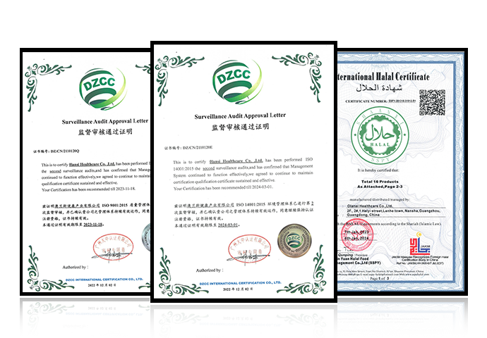 嚴格執行 ISO9001 質量控制體系和 ISO14001 環境體系,從原材料篩選到生產工藝環節嚴格把關,確保產品高質量、可靠,積極踐行環保理念,實現可持續發展。產品通過 HALAL 認證,滿足不同宗教信仰消費者需求。擁有消毒產品衛生許可,具備專業資質和能力。